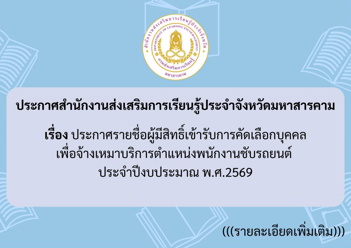 ประกาศสำนักงานส่งเสริมการเรียนรู้ประจำจังหวัดมหาสารคาม